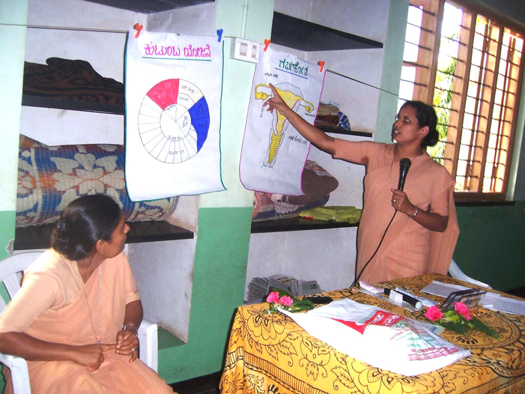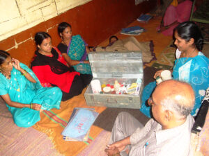 Health care in remote rural villages was almost non-existent and the Primary Health Care centers had not yet made ways to the villages. Responding to the need of better health care for people in village areas, SAS introduced a community health program in 47 socioeconomically weak villages. As part of this program one woman from each village was trained and appointed as a community health worker. These health workers were trained in curative and prophylaxis health services, basic medicines for common diseases, herbal or indigenous medicine and home remedies. They helped rural people to access Government health services including immunization of children. In addition, they conducted awareness sessions on preventive medicine, nutritional food and eating habits, personal cleanliness, health and hygiene, yoga and HIV/AIDS. As the government appointed Accredited Social Health Activist (ASHA) workers, SAS closed its service in the sector of Community Health.